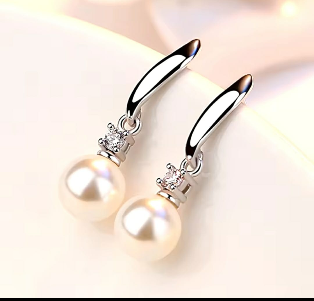 Brinco banhado a prata com zirconias e pérola